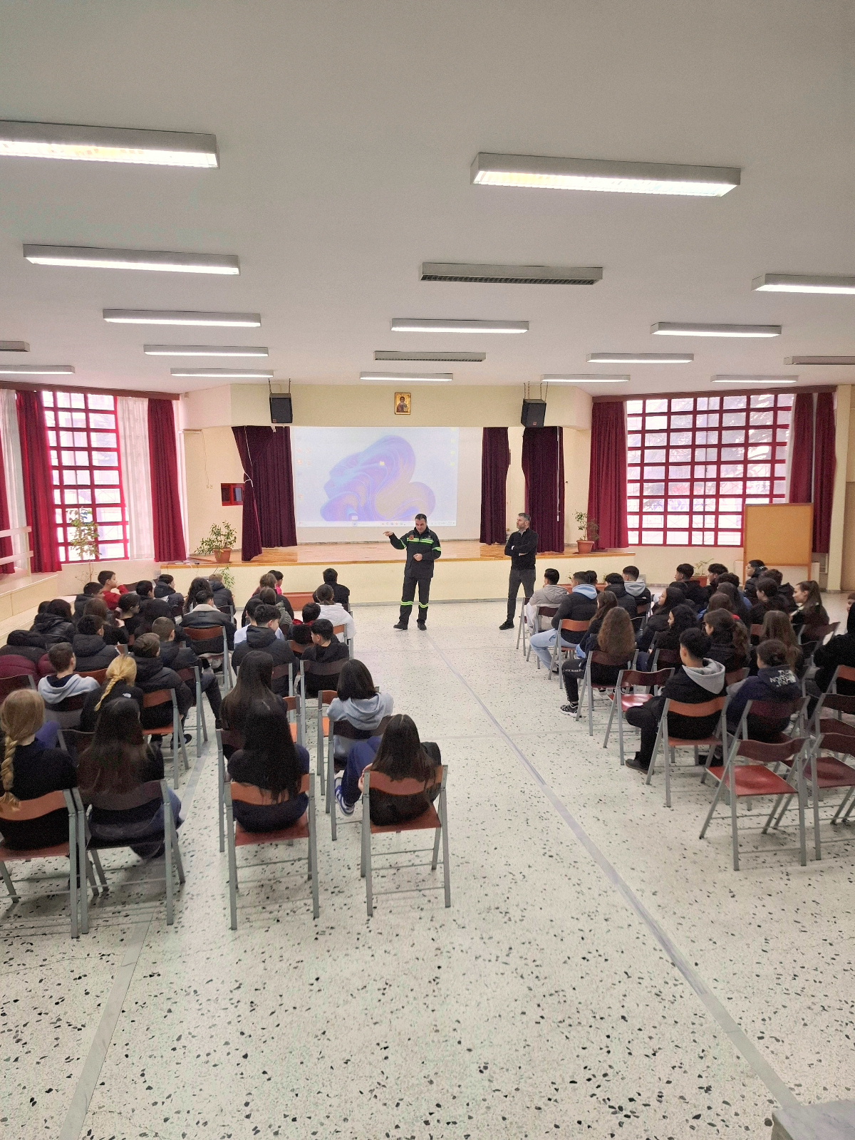 Την Τρίτη 10/2/2026, το σχολείο μας είχε τη χαρά να φιλοξενήσει κλιμάκιο της Πυροσβεστικής Υπηρεσίας Σερρών, στο πλαίσιο της δράσης “Ενεργός Πολίτης”, για την ενημέρωση και ευαισθητοποίηση των μαθητών της Β΄ Γυμνασίου σε θέματα πολιτικής προστασίας.