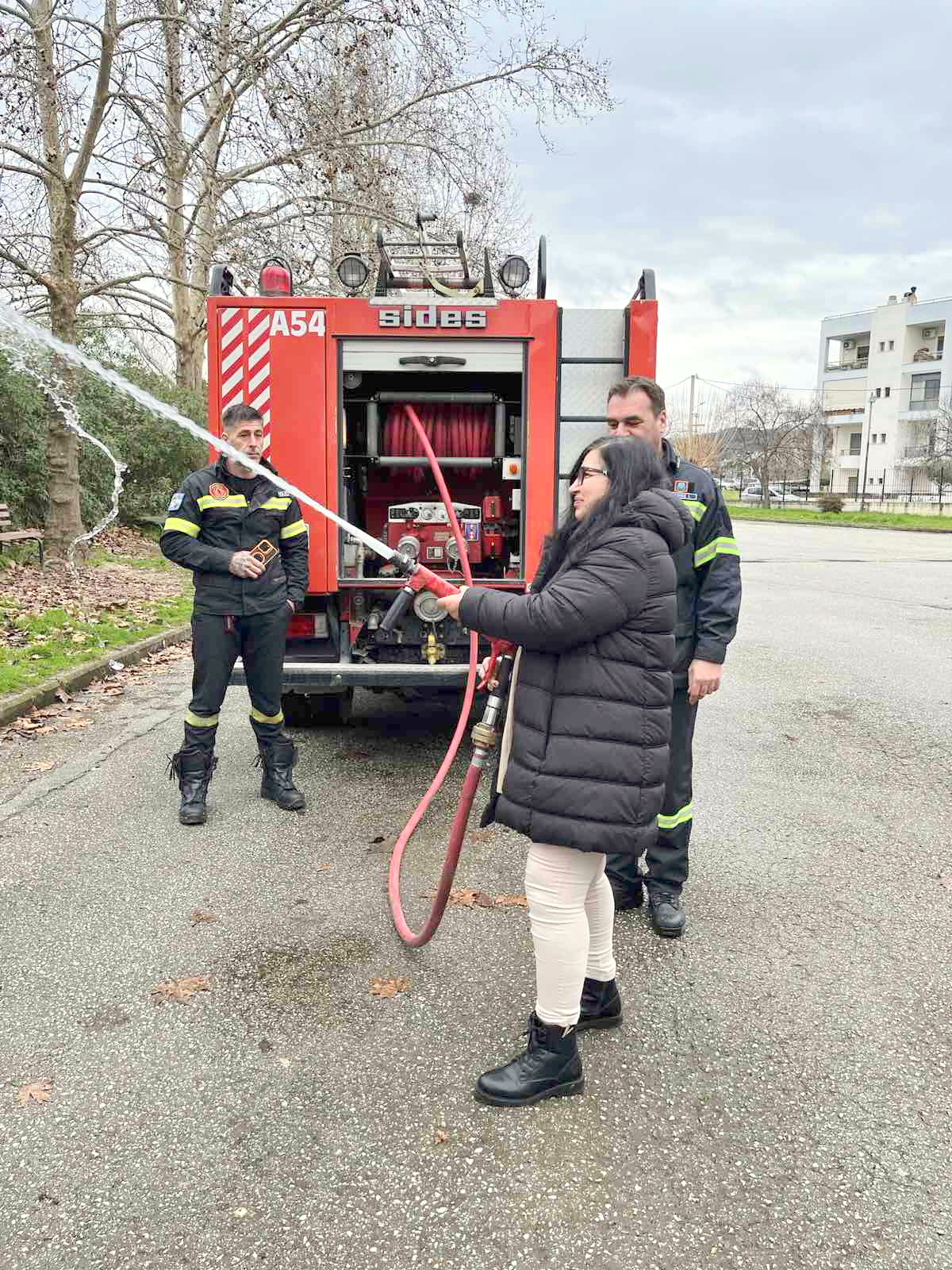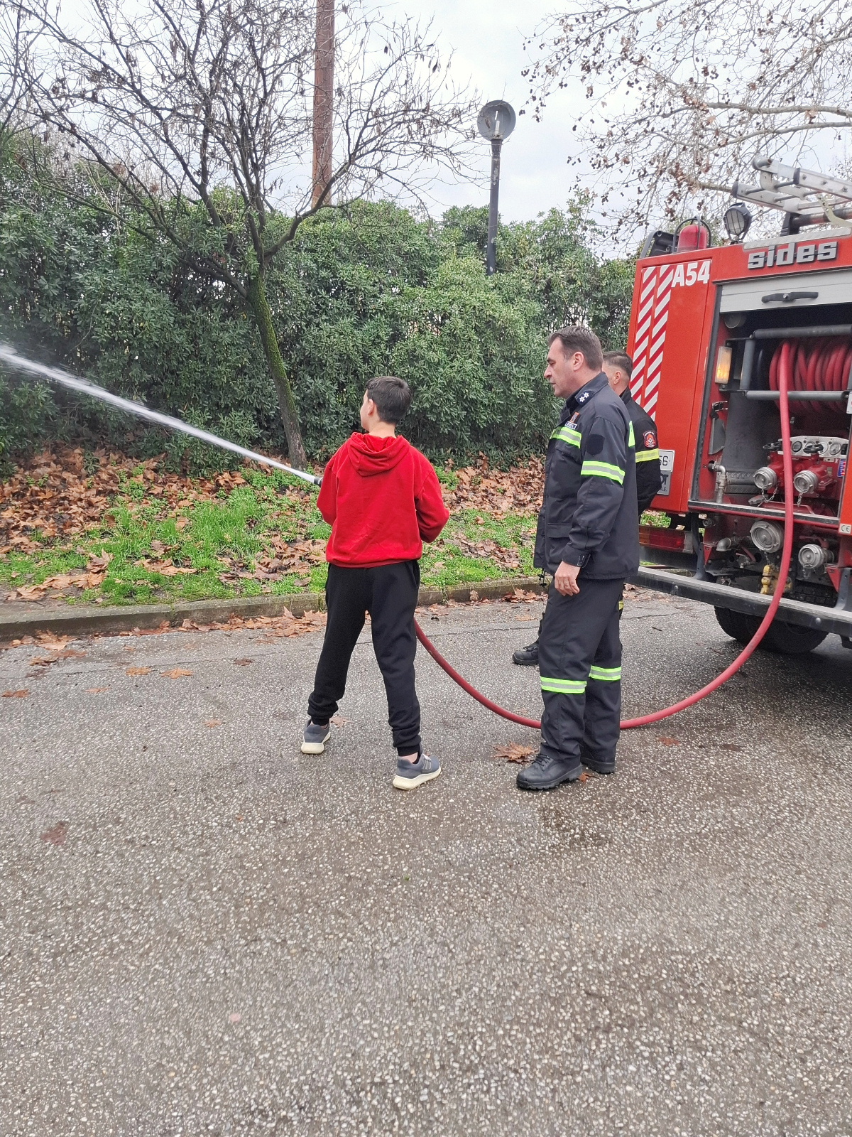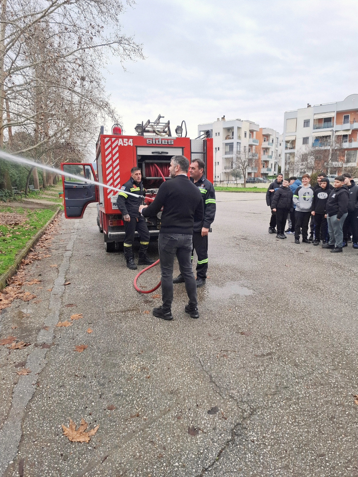Οι μαθητές είχαν την ευκαιρία να δουν από κοντά το πυροσβεστικό όχημα, τον εξοπλισμό των πυροσβεστών και να λύσουν όλες τους τις απορίες.