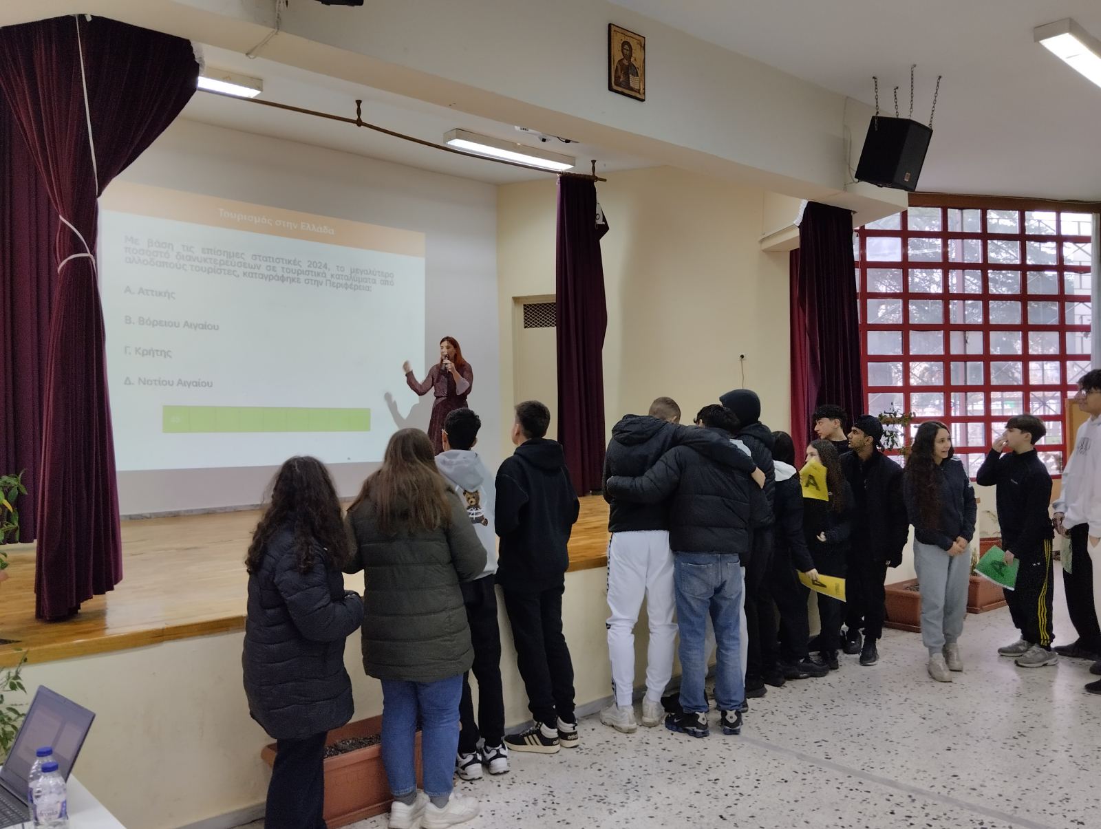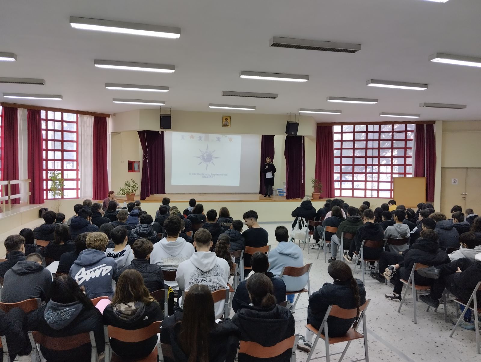 Παρακολουθήσαμε μια ενδιαφέρουσα εισήγηση από την προϊσταμένη του τμήματος η κ. Λιάτσα. Ακολούθησαν βιωματικά παιχνίδια από την κ. Ασημάκη, στα οποία οι μαθητές της Γ’ ανταποκρίθηκαν με ενθουσιασμό. Ήταν μια ξεχωριστή παρουσίαση που μας άφησε πολλές θετικές εντυπώσεις.